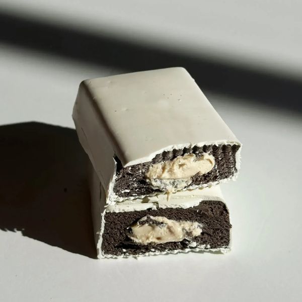 Bohatá proteínová tyčinka ponorená do sladkej bielej glazúry poteší vaše chuťové poháriky chuťou vynikajúceho dezertu, ktorý sa rozvinie s každým sústom, a ľahká krémová náplň tieto pocity zdvojnásobí.